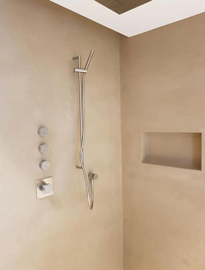 Beton Ciré: Cementgebonden stucsoort voor waterdichte wandafwerking. Toepasbaar op vrijwel alle ondergronden. Voor woning, bedrijfsruimte, wanden van woonkamer, badkamer, toilet, meubels, aanrechtbladen en zelfs vloeren.
